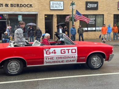 David Stock driving his GTO in the 2025 FFHS Homecoming Parade. (Photo courtesy of Tom Hintgen.)